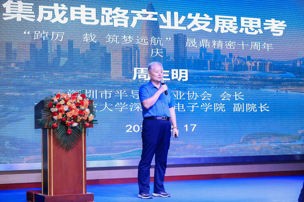 盛典現(xiàn)場,除了徐秘書長的精彩致與蘇總的演講外,我們還邀請到了深圳市半導(dǎo)體行業(yè)協(xié)會榮譽會長周會長進行致辭。周會長就目前半導(dǎo)體產(chǎn)業(yè)發(fā)展的局勢從市場、國際環(huán)境、行業(yè)背景等進行分析,同時也表達了對晟鼎未來發(fā)展的誠摯祝福。