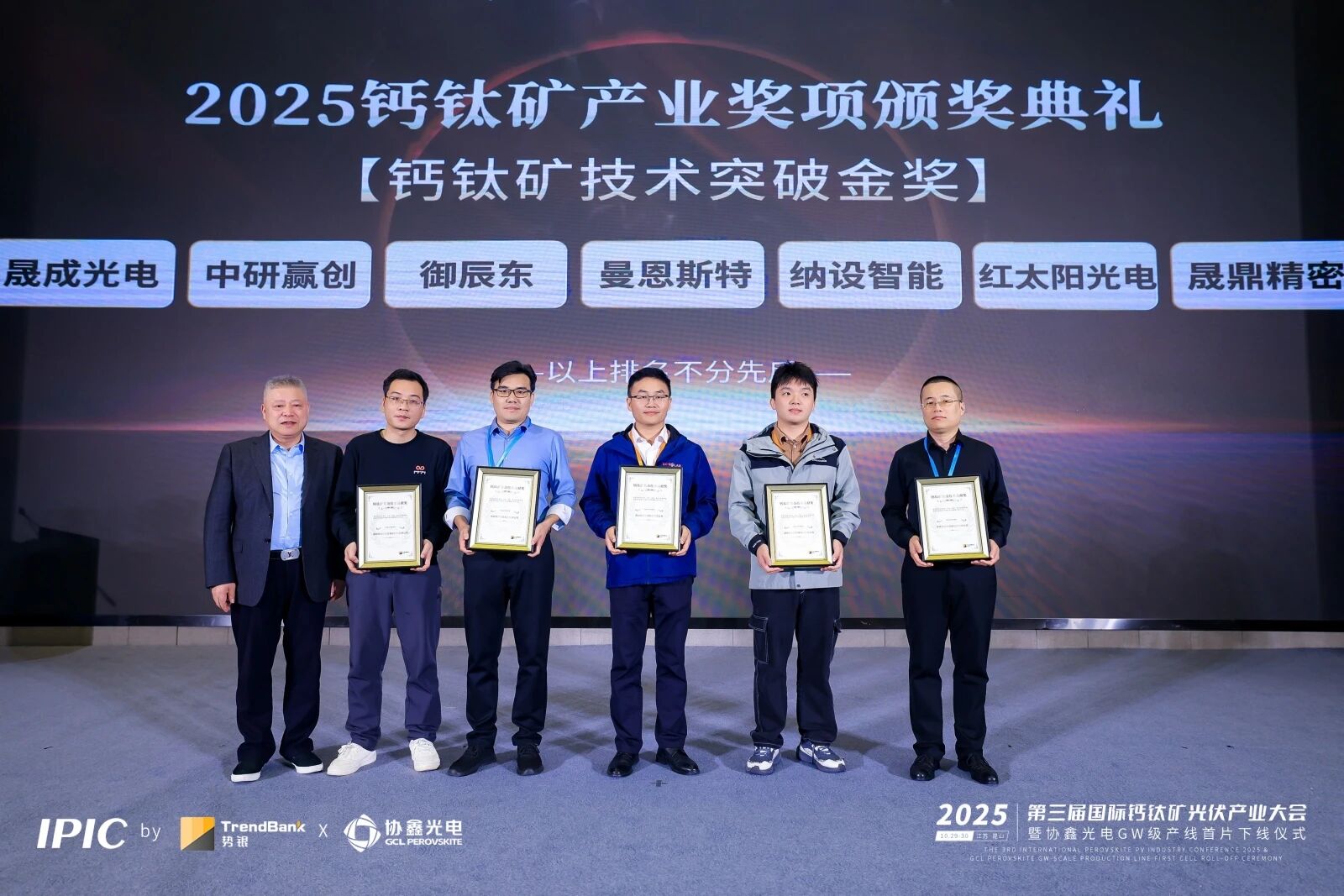 ??晟鼎受邀參加并獲大會頒發(fā)的鈣鈦礦裝備技術(shù)貢獻(xiàn)獎,以表彰其在鈣鈦礦清洗、涂布、蒸鍍、激光刻劃等關(guān)鍵設(shè)備研發(fā)或國產(chǎn)化替代中發(fā)揮的重要作用。