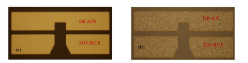 (a)退火前歐姆接觸形態(tài) (b)退火后歐姆接觸形態(tài)